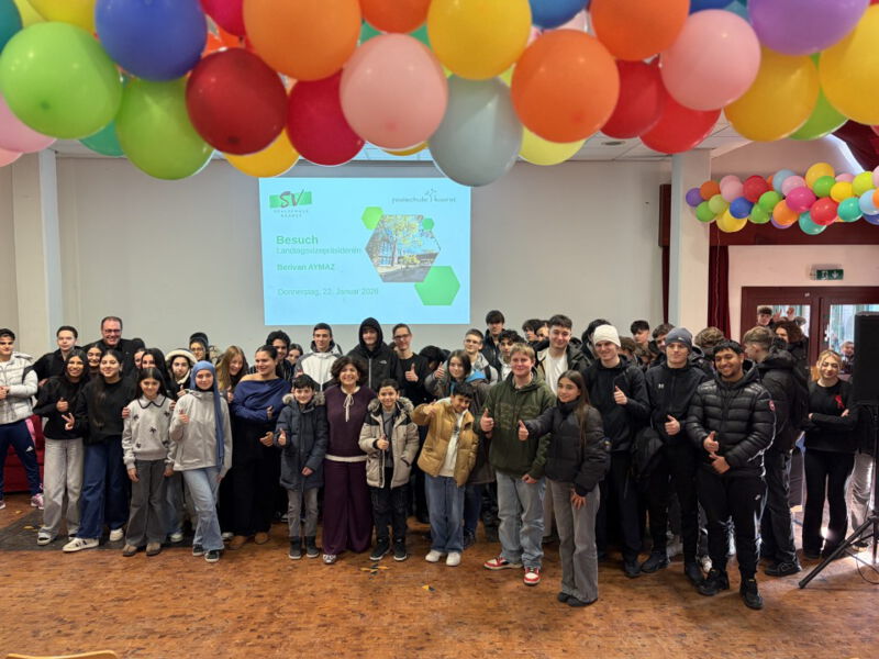 Es dauerte keine Minute bis die Landtagsvizepräsidentin Aymaz von ihrem Sessel auf der Bühne des Forums aufstand und mit ihrem Mikrofon durch die Reihen der Schülerinnen und Schüler im Publikum ging, selbst Fragen stellte und spürbar mit vielen in ein echtes Gespräch kommen wollte.